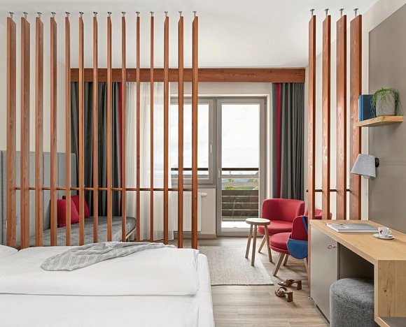 z.B. 1 Nacht, ab 29.5.2026, Superior Dreibettzimmer Balkon Dorfblick, Halbpension