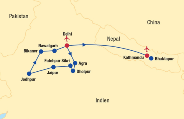 11. Tag (Mi.): Nawalgarh – Neu-Delhi (ca. 265 km), Flug Neu-Delhi – Kathmandu (Nepal)