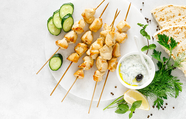 Dieses Urlaubsgericht lässt sich übrigens ganz toll zu Hause nachmachen. Das gewürfelte Fleisch wird in eine Mariande aus Ölivenöl und mediterranen Kräutern eingelegt und kommt dann am Spieß auf den Griller. Dazu ein wenig Tzatziki und Pita Brot. So holen Sie sich ein Stück Griechenland auf Ihren Teller!